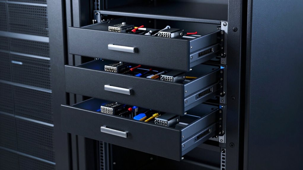 Choosing the right rackmount drawer feels like finding the perfect toolbox—essential, reliable, and tailored to your needs. Whether you need lockable security or ample space, these options are your trusted allies in keeping spare transceivers and tools organized. Remember, a well-chosen drawer is the backbone of an efficient workspace, ensuring your gear’s safety and quick access. In the world of tech, the right storage is the anchor that keeps everything steady and within reach.